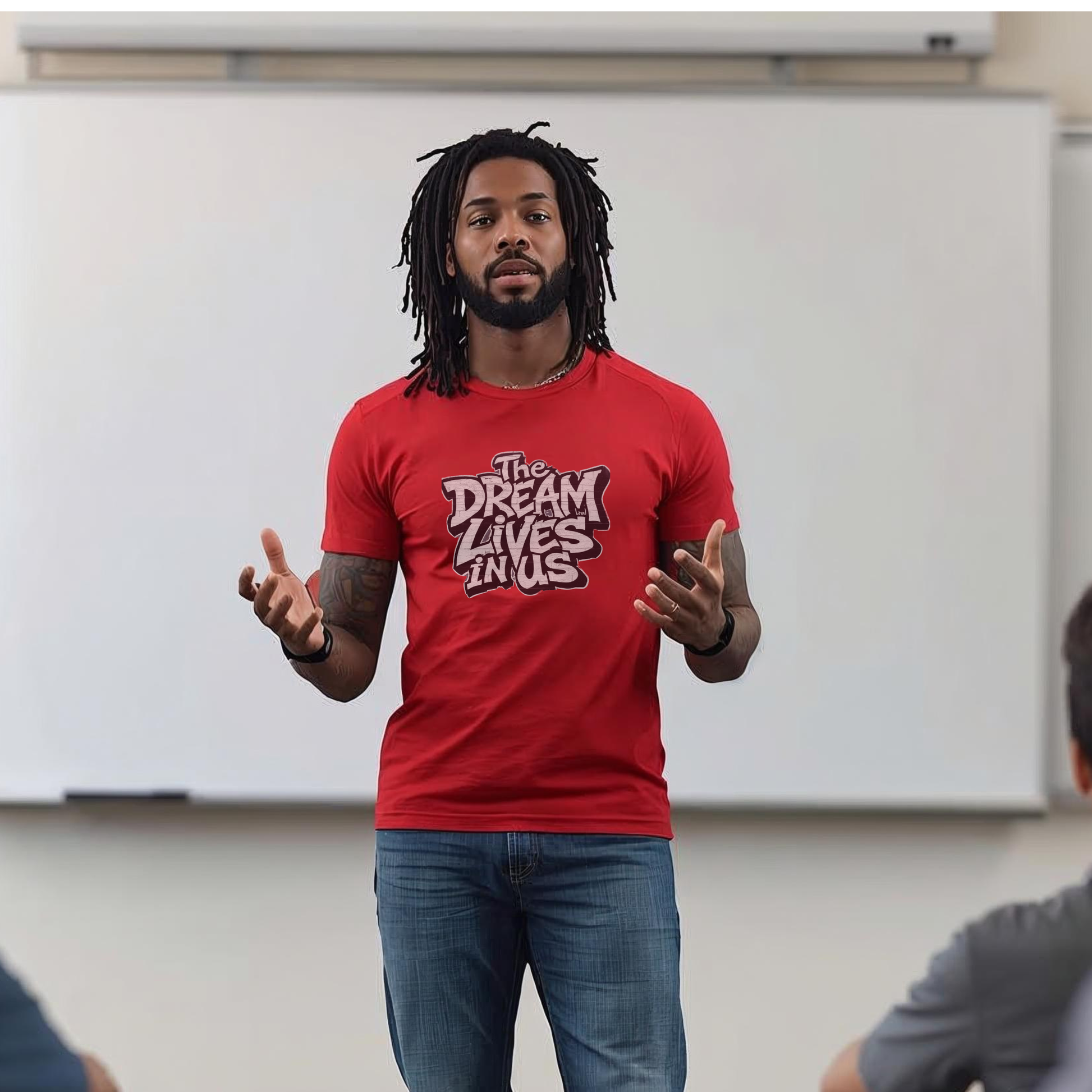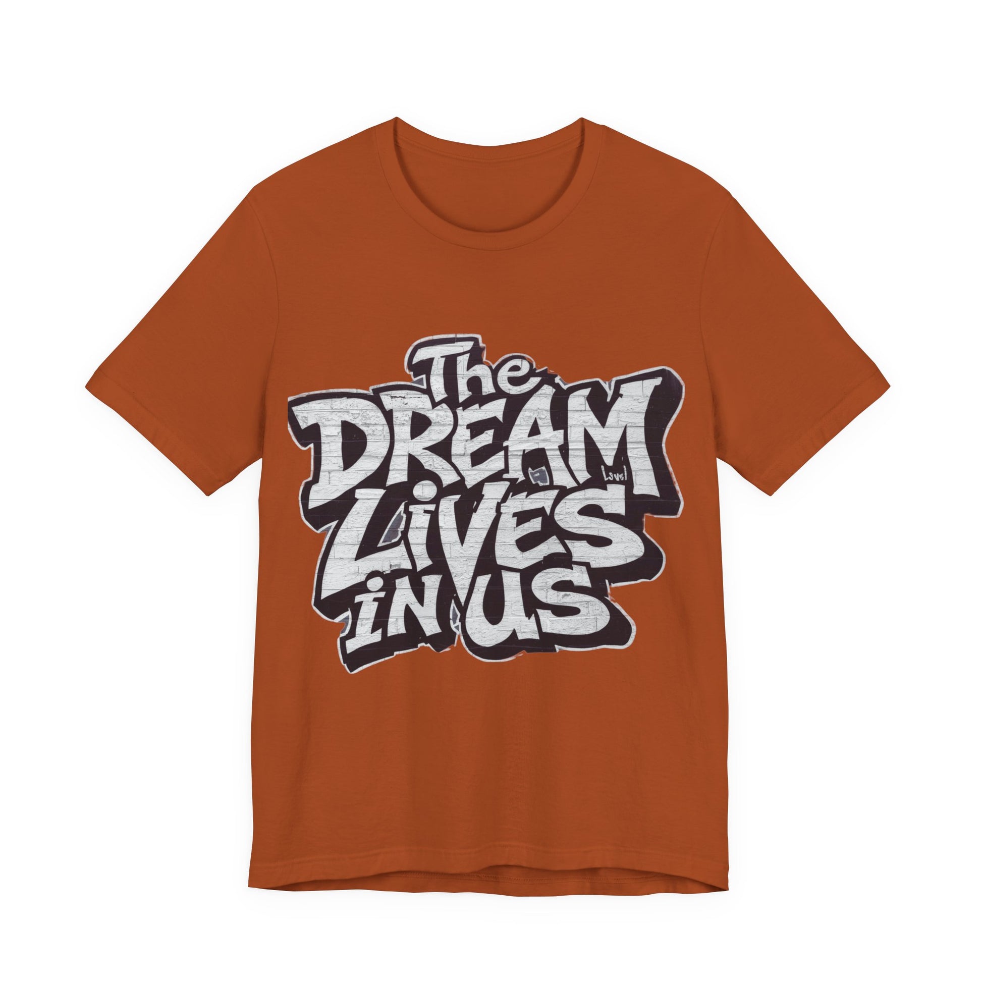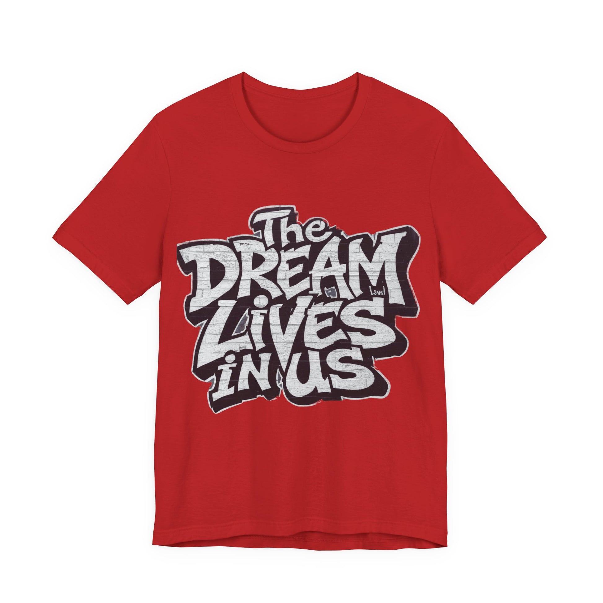 Bold message. Clean aesthetic. This black‑and‑white “The Dream Lives In Us” T‑shirt delivers a powerful statement in a timeless, minimalist style.