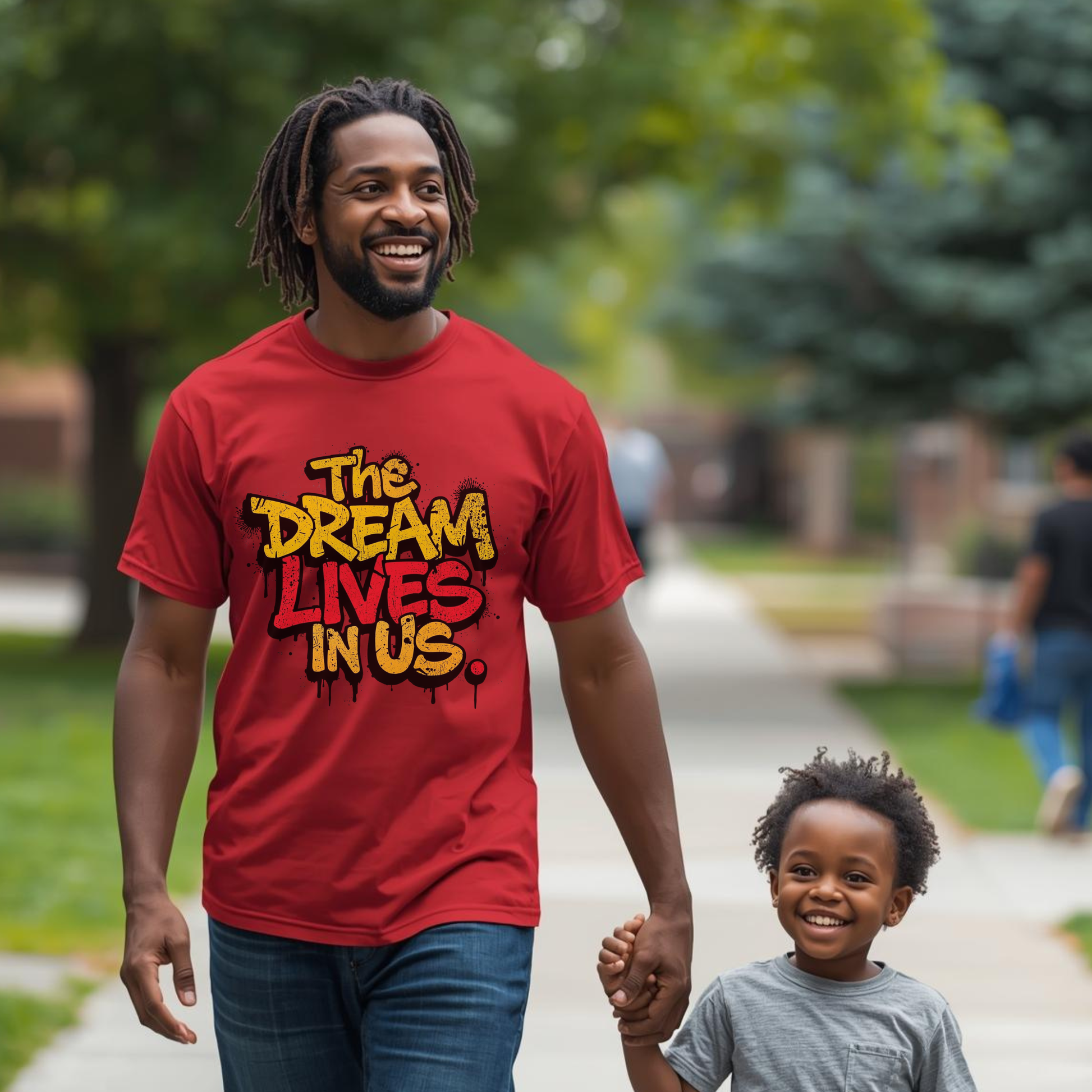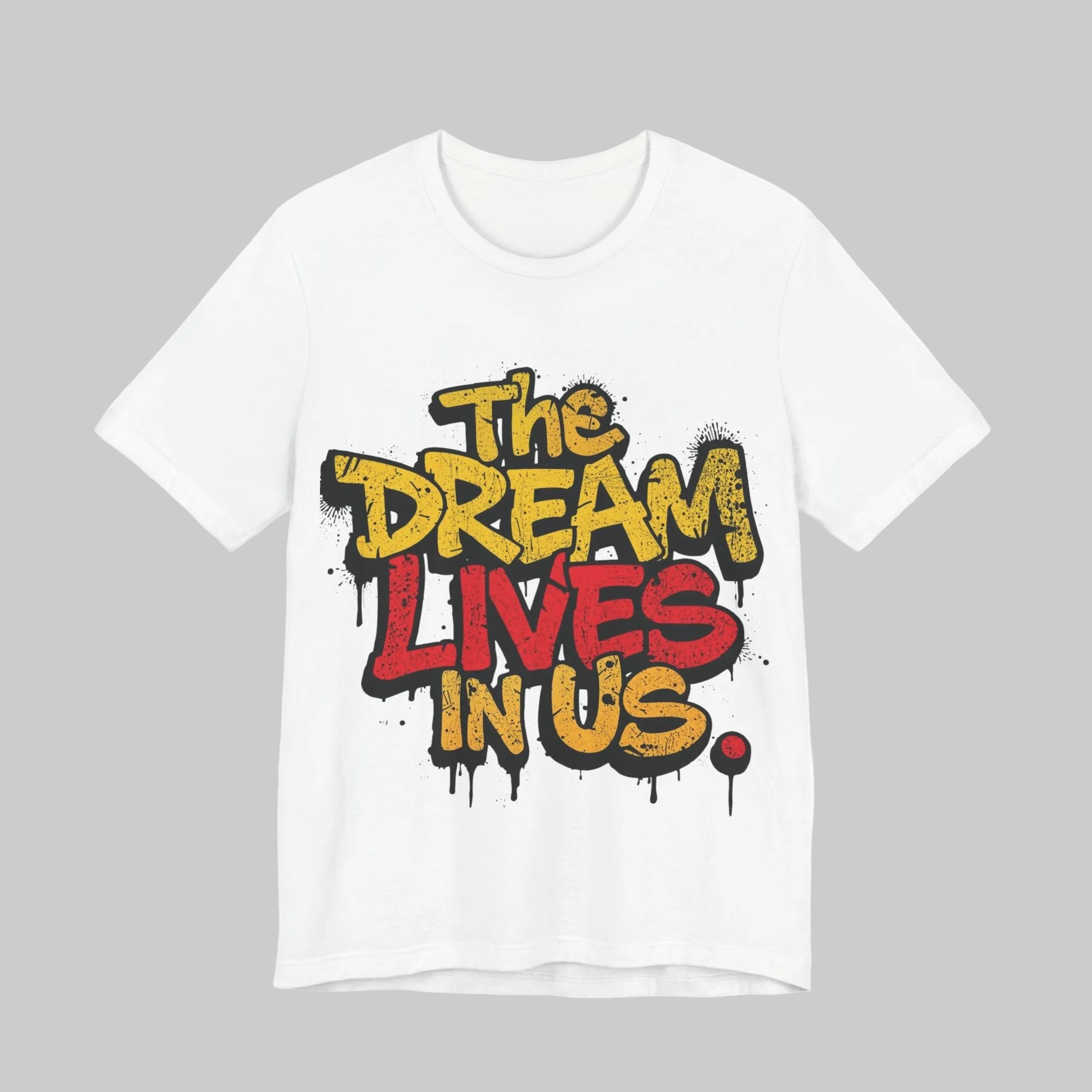 Wear the message. This “The Dream Lives In Us” T‑shirt blends bold graffiti‑style art with a timeless reminder rooted in unity, legacy, and purpose.