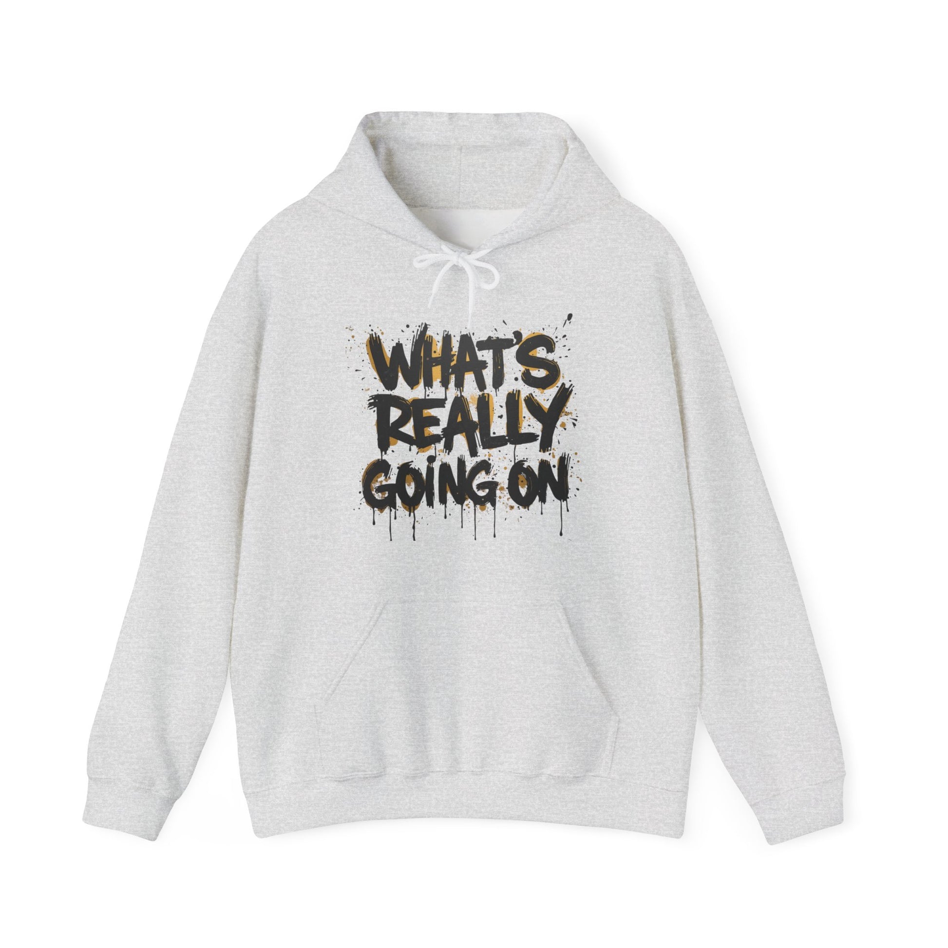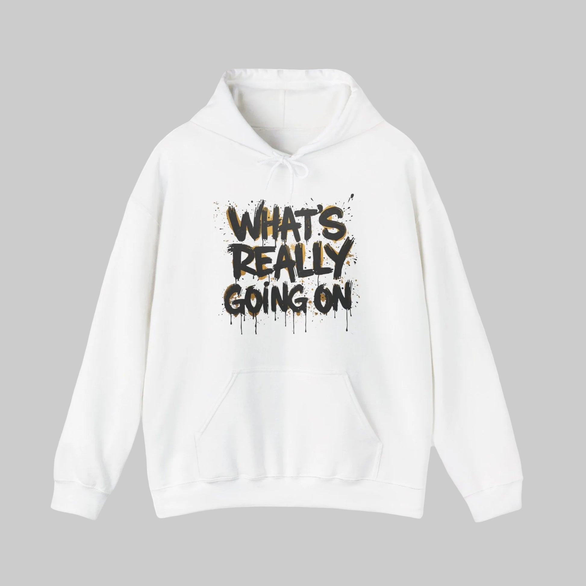This hoodie is a full-body statement. Featuring bold graffiti text outlined in dripping gold, it’s designed for those who move through the world with clarity and courage. The WHAT’S REALLY GOING ON message hits hard — challenging silence, sparking unity, and calling the culture to wake up. Cozy, powerful, and built for impact.
